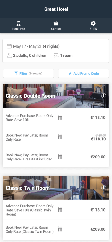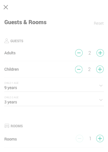 - Guest & Rooms selector